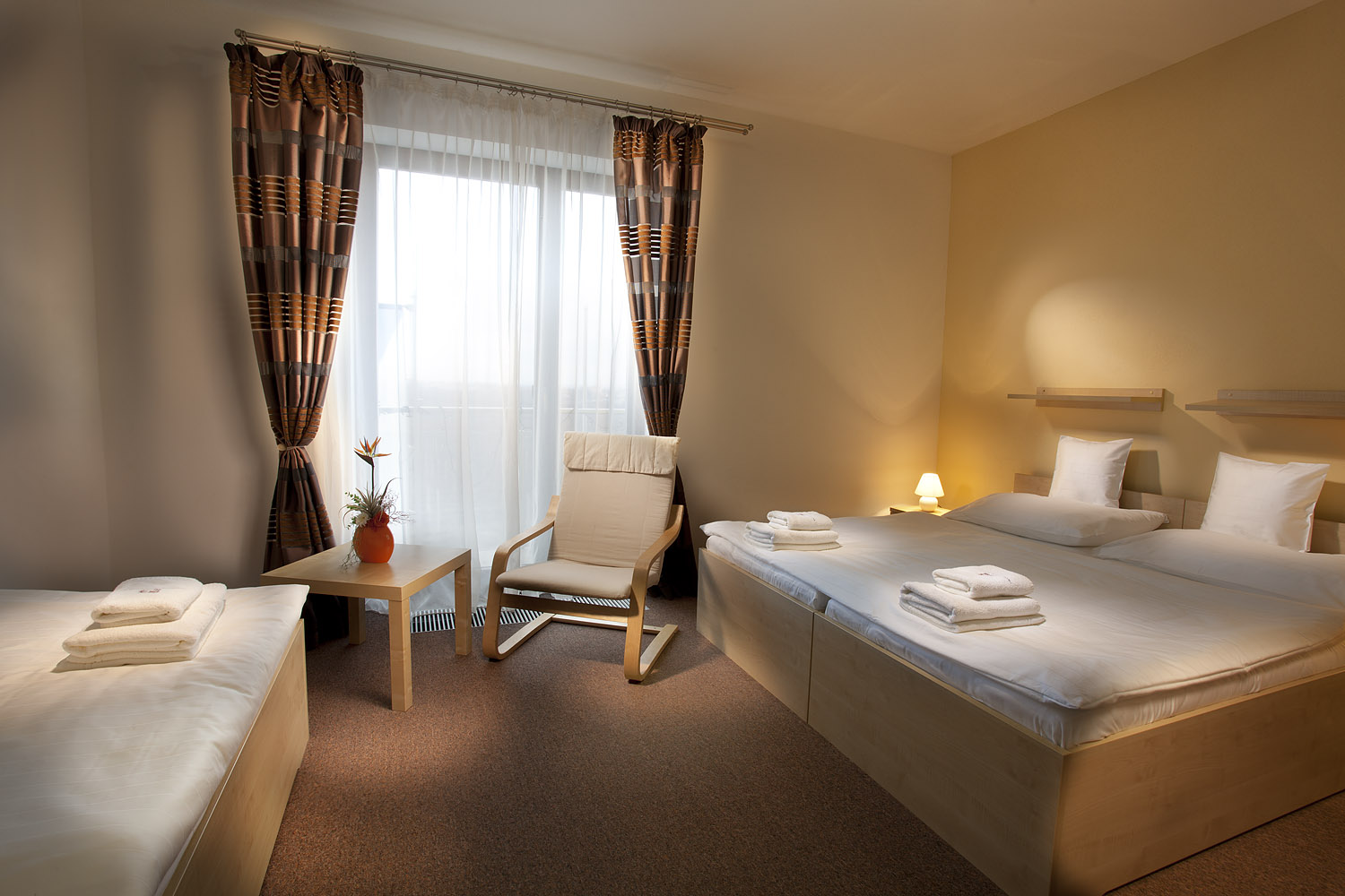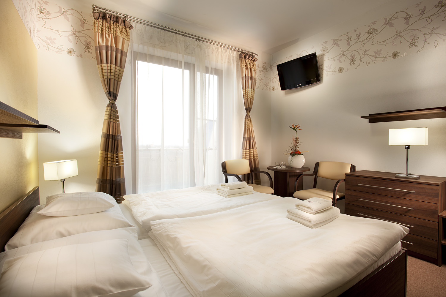 Pod jednou střechou na Vás čeká pohodlí a odpočinek v krásných, moderně zařízených pokojích a zároven výborná kuchyně s bohatým výběrem jídel a nápojů v restauraci, lobby baru a letní zahrádce.