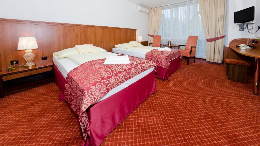 Hotel disponuje 118 rekonstruovanými pokoji s 235 lůžky, třemi restauracemi, vinárnou, 8 salonky, kongresovým sálem s kapacitou 220 osob, fitness, saunou a v celém hotelu je možnost bezplatného připojení internetu prostřednictvím WI-FI. |