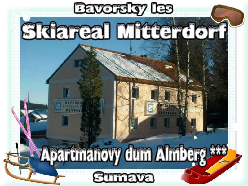 Úvodem mně dovolte, abych se omluvil všem, kteří na tomto místě hledají ubytování v Čechách. Prezentovaný objekt je sice na Šumavě, jen asi 300 m od státních hranic, ale v Bavorsku. Jde o nově ve vyšším standardu zrekonstruovaný objekt v horské vesničce Mitterfirmiansreut (Mitterdorf), která je vzdálena jen několik set metrů od česko-bavorské hranice. Objekt se nachází přímo pod jednou ze sjezdovek. Mitterfirmiansreut (Mitterdorf) je střediskem zimních sportů a v létě ideálním výchozím místem pro ty, kteří chtějí pěšky neb na kole poznávat krásy Bavorského lesa na německé a Šumavy na české straně společné hranice. Hostům je k dispozici šest zcela samostatných apartmánů (2 x 4 lůžka + 2 x 5 lůžek + 2 x 7 lůžek). Každý apartmán je vybaven obytnou místností s TV a zařízeným kuchyňským koutem , dvěma ( třemi ) ložnicemi a koupelnou se sprchou a WC. Objekt je vhodný jak pro klidnou rodinnou rekreaci, tak i pro skupinové pobyty. Objekt se nachází v nadmořské výšce cca 1.040 m pod horou Almberg (1.139 m) a nabízí překrásný panoramatický výhled na Šumavu a Bavorský les.