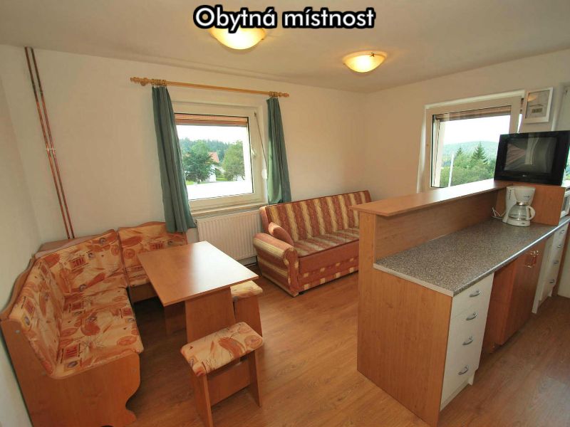 Teplá voda ve všech apartmánech je samozřejmostí. Ke každému apartmánu přísluší ve sklepě objektu prostor pro úschovu kol neb lyží. Za domem je hostům k dispozici venkovní posezení ve stínu vzrostlých stromů s překrásným panoramatickým výhledem na Šumavu. Zde je i možnost využití venkovního grilu a trampolíny. Všechny apartmány jsou hostům k dispozici celoročně. Jsou stylově, ale přitom moderně vybaveny. V zimním období je vytápění zajištěno centrálním kotlem, případně el. přímotopy.