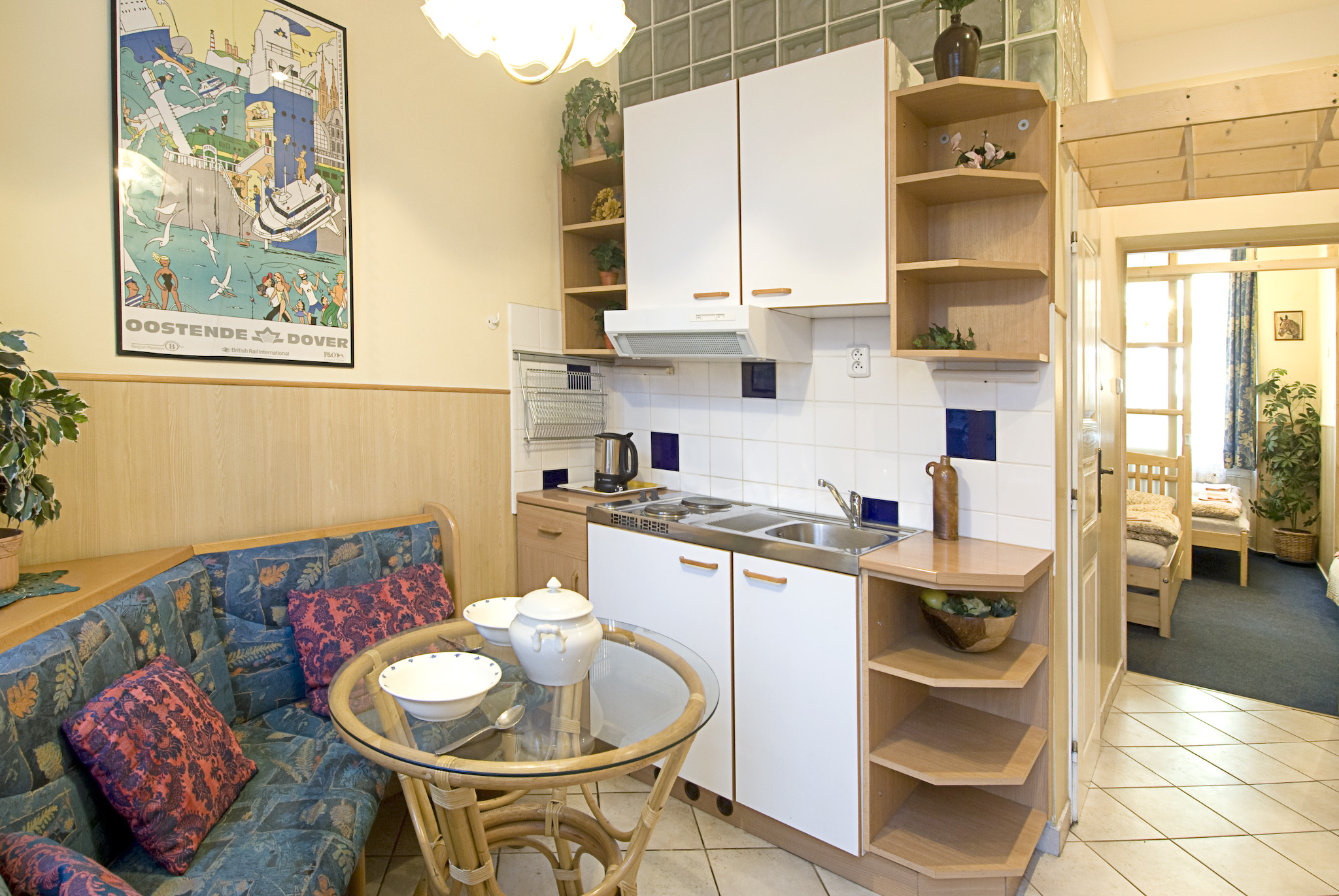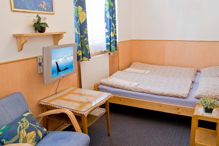 Pozn.: V apartmá je kuchyně se sporákem, v pokojích se nacházejí pouze ledničky. Káva a čaj jsou zahrnuty v ceně ubytování. Samozřejmostí je vlastní sociální zařízení ve všech pokojích i apartmánech.