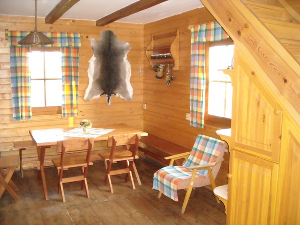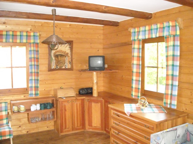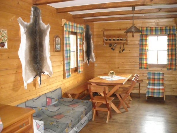 loroční dovolená ve srubu vybaveným kuchyňským koutem, jídelnou, která je zároveň společenskou místností,