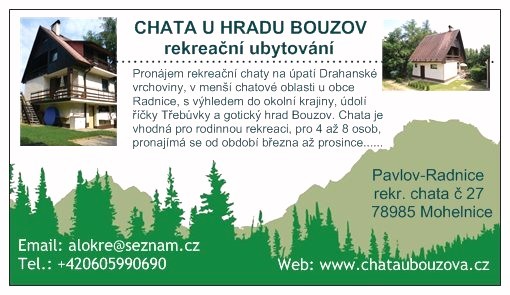 Bližší informace k pobytům na www.chataubouzova.cz