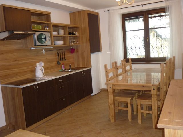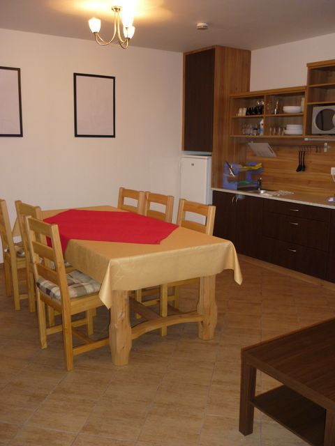 Obývací část - plně vybavený kuchyňský kout, jídelní kout,