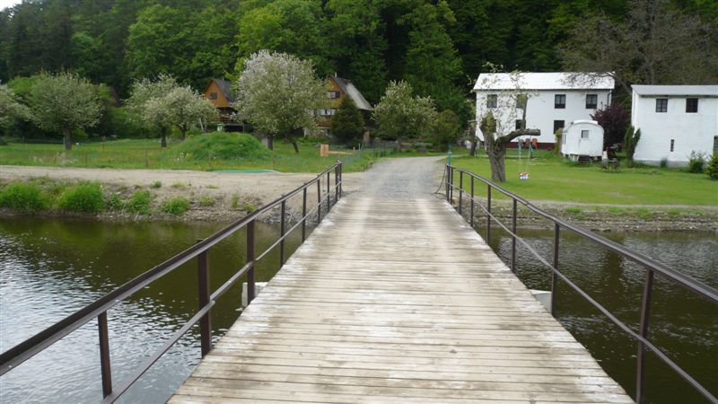 | zajímavosti v okolí, tipy na výlet : | V okolí je celá řada přírodních a historických zajímavoatí, jako na příklad hrad Křivoklát, zřícenina hradu Týřov, hrad Krakovec, kde se natáčela pohádka Ať žijí duchové a další. Z přírodních krás je ojedinělé blízké naleziště a muzeum trilobitů v obci Skryje. Další zajímavostí jsou místní "Lurdy", místo s nádhernou přírodou podél řeky a je to i místo, kde si přijdou na své i senzibilové. O něco níže po proudu je nádherný kraj Oty Pavla, který určitě stojí za návštěvu. V tomto "jeho" kraji byly zfilmovány některé jeho prózy, např. Zlatí úhoři (s Vladimírem Menšíkem) a Smrt krásných srnců (s Karlem Heřmánkem). Okresním městem je Rakovník, město památek, piva, bílého mýdla, keramiky a renesančních povídek Zikmunda Wintra. Z památek např. gotické brány, kostel sv. Bartoloměje, Husovo náměstí. Toto město je vzdáleno 20 km od Šlovic. Pro odpočinek jsou vhodné dlouhé procházky okolo Berounky nebo sbírání hub v hlubokých lesích. V letních měsících je otevřena vodácká hospoda na ostrově, kde se může domluvit i stravování. Pro zájemce je možné si vypůjčit pramici k projížďce po řece nad jezem a obdivovat krásy této řeky a tohoto kraje. Právě zde naleznete klid a odpočinek v nádherném a čistém prostředí našich lesů. I rybáři si zde můžou přijít na své. |