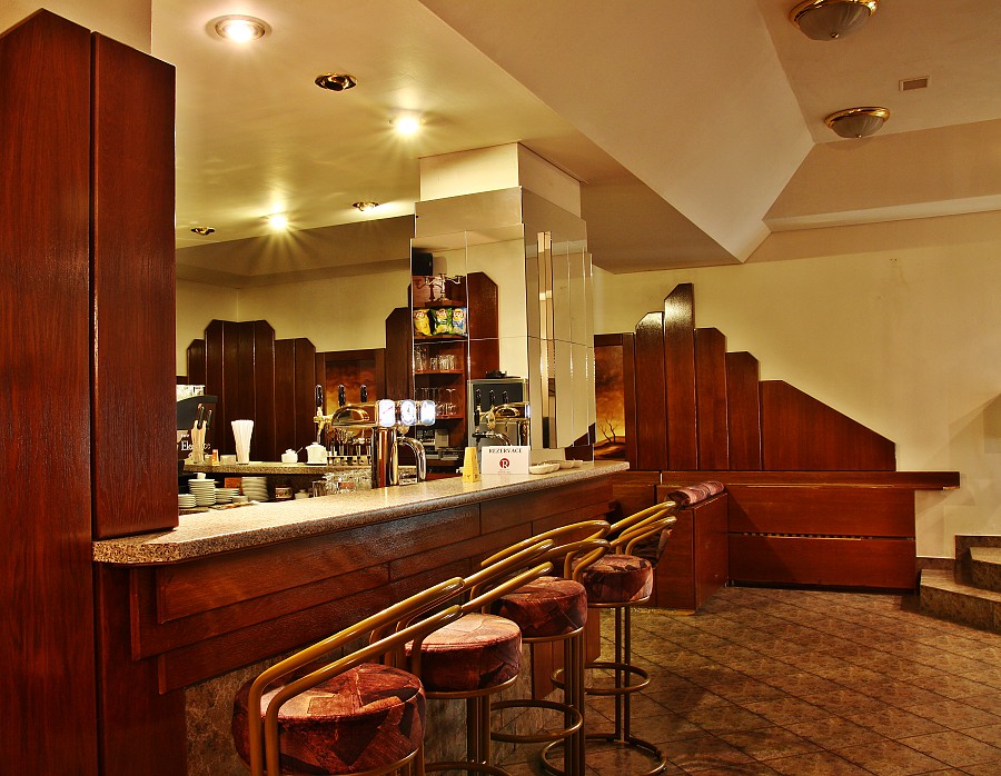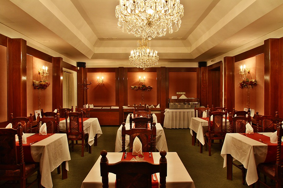 Hostům je k dispozici hotelový bar a restaurace, ve které nabízíme českou i mezinárodní kuchyni a speciality šéfkuchaře. Během pracovního týdne jsou podávána zvýhodněná obědová menu (polévka, hlavní pokrm), hosté mohou využít také salátový bufet. Restaurace je otevřena denně od 11-22 hodin. V případě zájmu si hosté mohou objednat večeři o třech chodech (polévka, hlavní pokrm, zákusek) v ceně 250 Kč/ osoba. Každý pátek se v hotelové restauraci konají swingové hudební večery kapely Old Stars Band. Rezervace míst je na objednávku. |