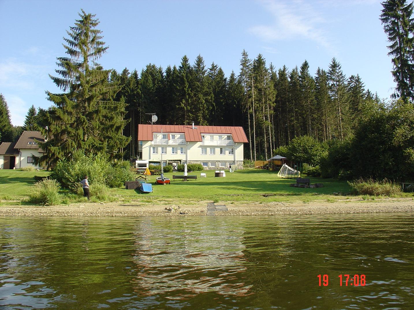 | zajímavosti v okolí, tipy na výlet : | Ubytovací zařízení Dominant se nachází v malebné lokalitě Jestřábí, jen 2 km od Černé v Pošumaví, přímo na břehu Lipenského jezera s velkým vlastním pozemkem. Jezero je zde široké 12 km a proto tu jsou ideální podmínky pro surfování, jachting, rybaření, ale také svou pláží a pozvolným přístupem do vody pro klidnou rodinnou dovolenou s malými dětmi. Okolní lesy poskytují mnohé vyžití zvláště pro houbaře. Penzion Dominant je situován na mírně svažitém pozemku s vlastní pláží, s dobrým příjezdem a s vlastním parkovištěm přímo u objektu. Autobusové spojení je do Černé v Pošumaví. Oblast Lipna poskytuje jak mnoho km cyklostezek, krásné výlety do okolní přírody tak i výlety na památky jako je hrad Rožmberk, Český Krumlov, klášter ve Vyšším Brodě apod. Okolí nabízí mnoho způsobů pro rekreaci. Například vodní sporty, cykloturistiku, houbaření, rybaření atd. V blízkosti penzionu je několik restaurací s výbornou domácí kuchyní. V penzionu je možno zapůjčit lodičky, gril apod. Možnost zajištění výletu po Lipně plachetnicí,jízdy na kanoích na horním toku Vltavy a projížďky na koních. Pro děti je připravena houpačka,ping-pong. |