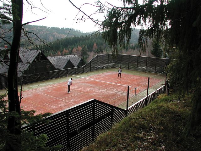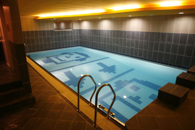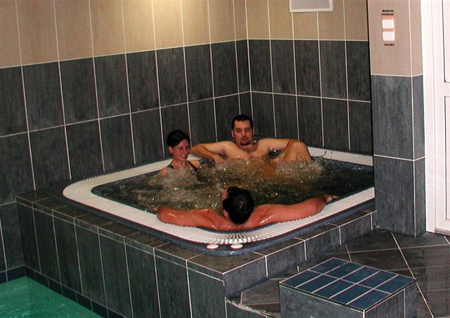 Vybavení - vnitřní bazén 10x5m, vířivka, sauna, restaurace, TV místnost, herna, pingpong, fotbálek, šipky a hřiště.