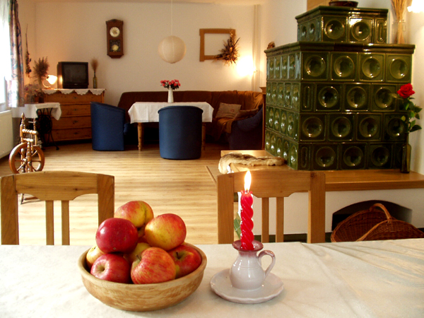 Vybavení: 5 ložnic ( 4,4,4,4,2) + sednice s kachlovými kamny na dřevo, jídelna, veliká kuchyn vybavená myčkou, mikrovnkou, plyn. sporákem, 2 lednicemi atd......3x sociální zařízení.