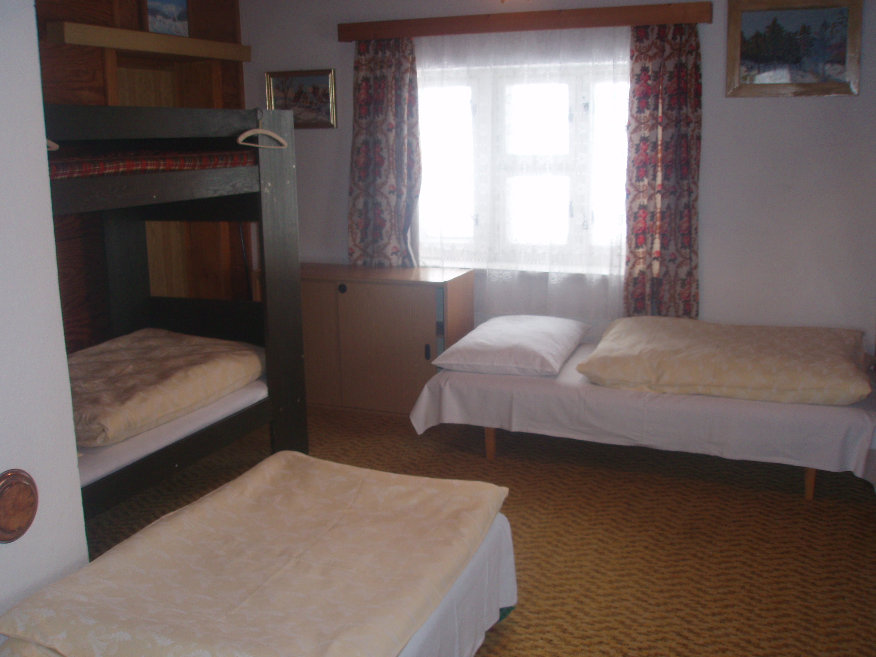 Chalupa má 3 ložnice-1 dvoulůžková,1 čtyřlůžková a 1 třílůžková, obývací