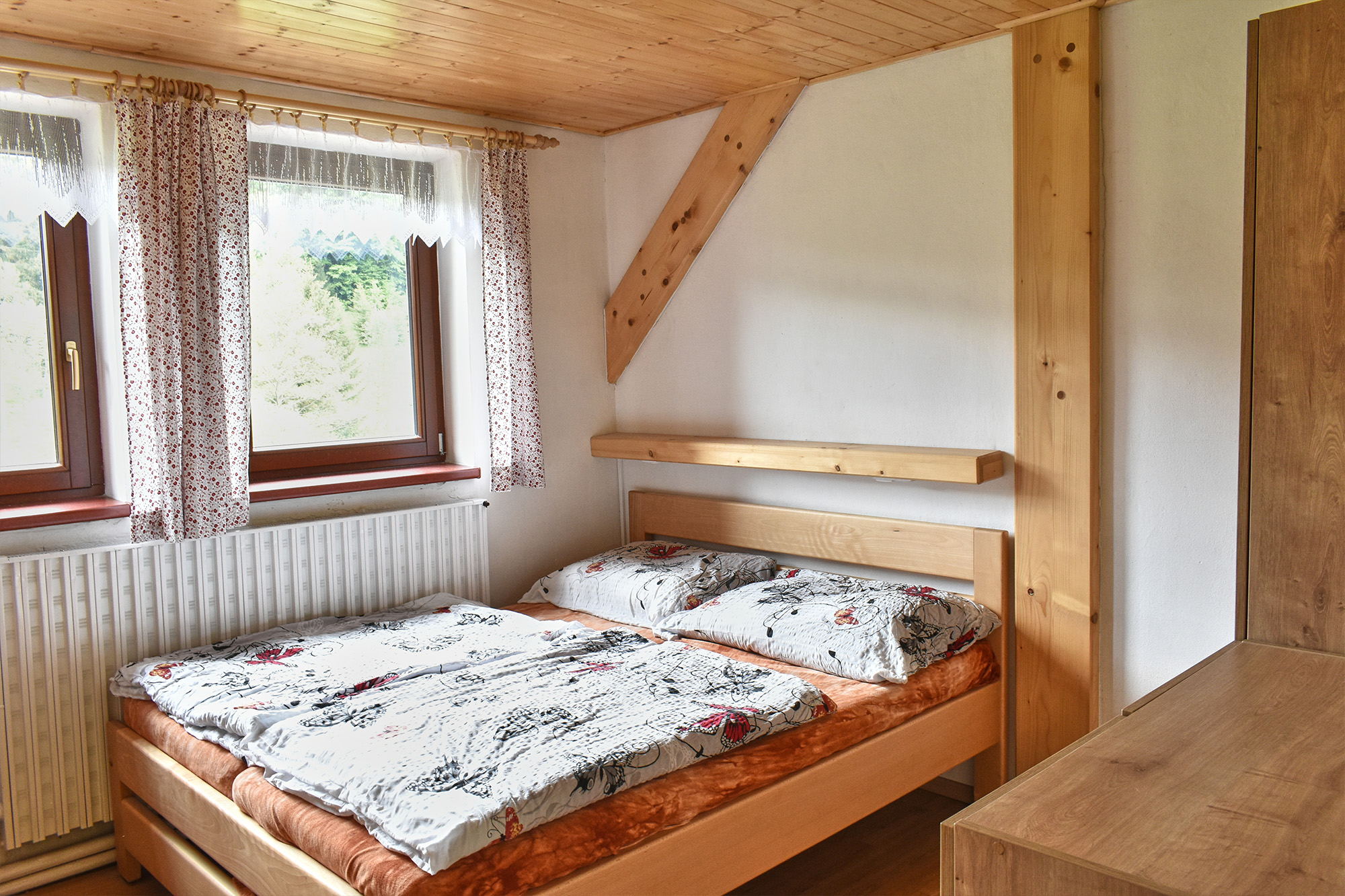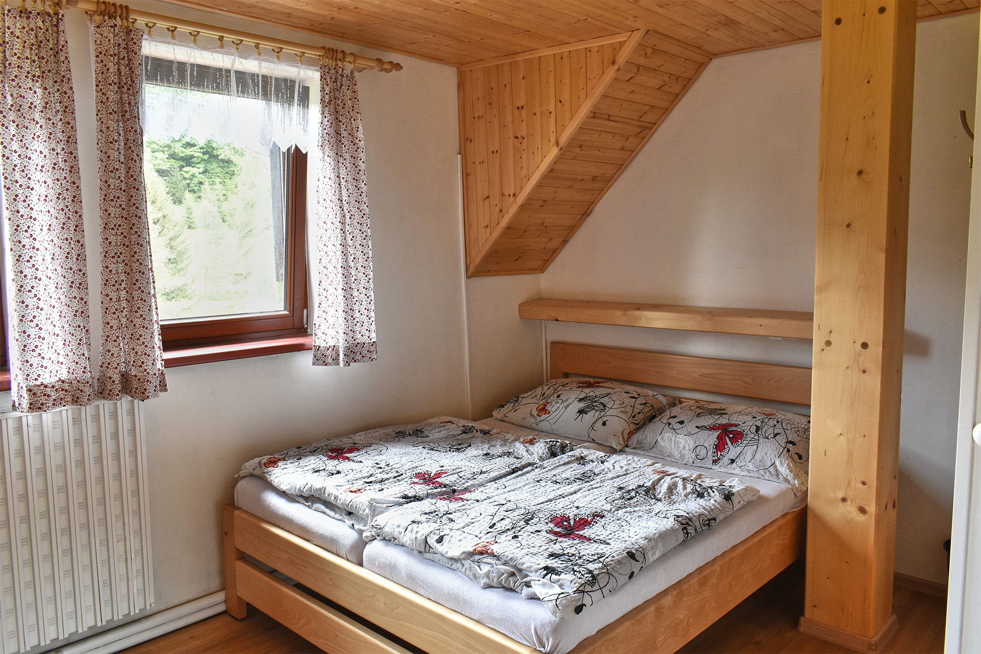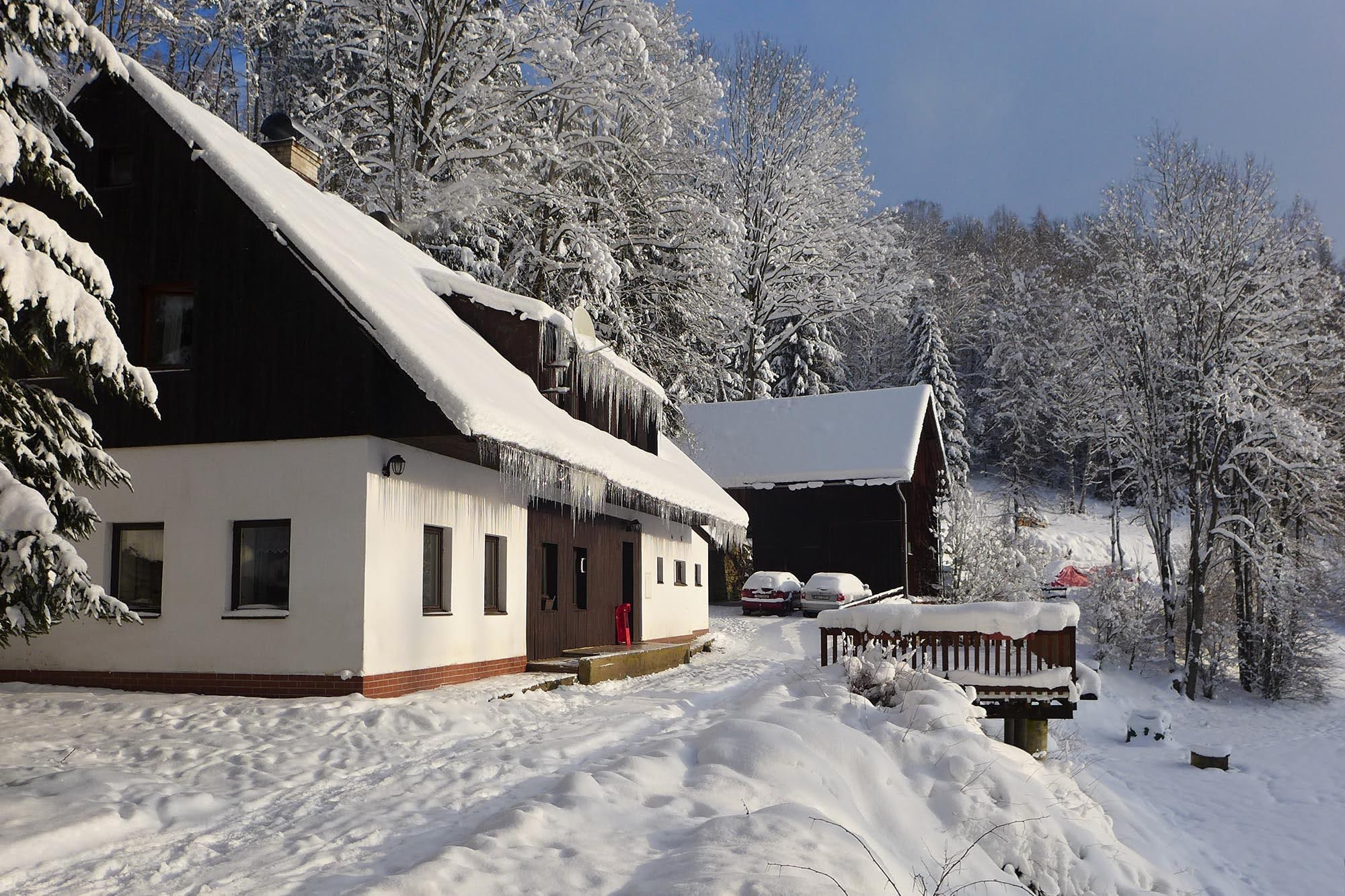 Chalupa Orlička se nachází v Orlických horách v malebném údolí Moravské Sázavy. Leží na velmi klidném místě na kraji obce Výprachtice obklopená lesy a svěží zelení blízko Horského resortu Buková hora. V obci je velmi dobře zásobený obchod otevřený 7 dnů v týdnu, restaurace se slušnou nabídkou jídel a velké dětské hřiště. Chalupa je naprosto optimální pro společnou zimní či letní rekreaci středně velké skupiny přátel či několika spřátelených rodin. Okolí nabízí možnost nerušené relaxace a je vhodné pro turistiku, cykloturistiku a sjezdové či běžecké lyžování. Objekt je bez stálého správce a je pronajímán celý. Chalupa Orlička prošla v roce 2021/2 rekonstrukcí a nabízí ubytování pro 18-24 hostů v sedmi dvou až čtyř lůžkových pokojích. V kompletně vybavené kuchyni jsou dvě velké lednice, dvě varné desky, trouba, myčka nádobí a automatický kávovar. Návštěvníkům je dále k dispozici velká terasa, venkovní gril, stolní tenis a Wi-Fi přístup k internetu. Kola nebo lyže je možno pohodlně uschovat ve velké stodole. U chalupy je dostatek parkovacího místa pro 10 aut. |