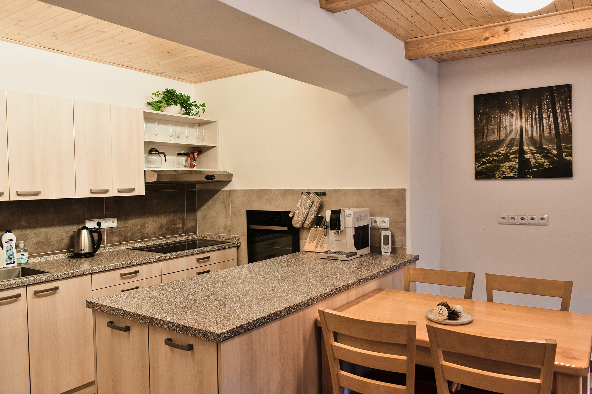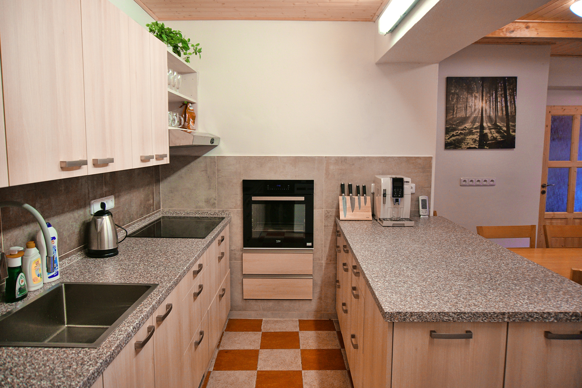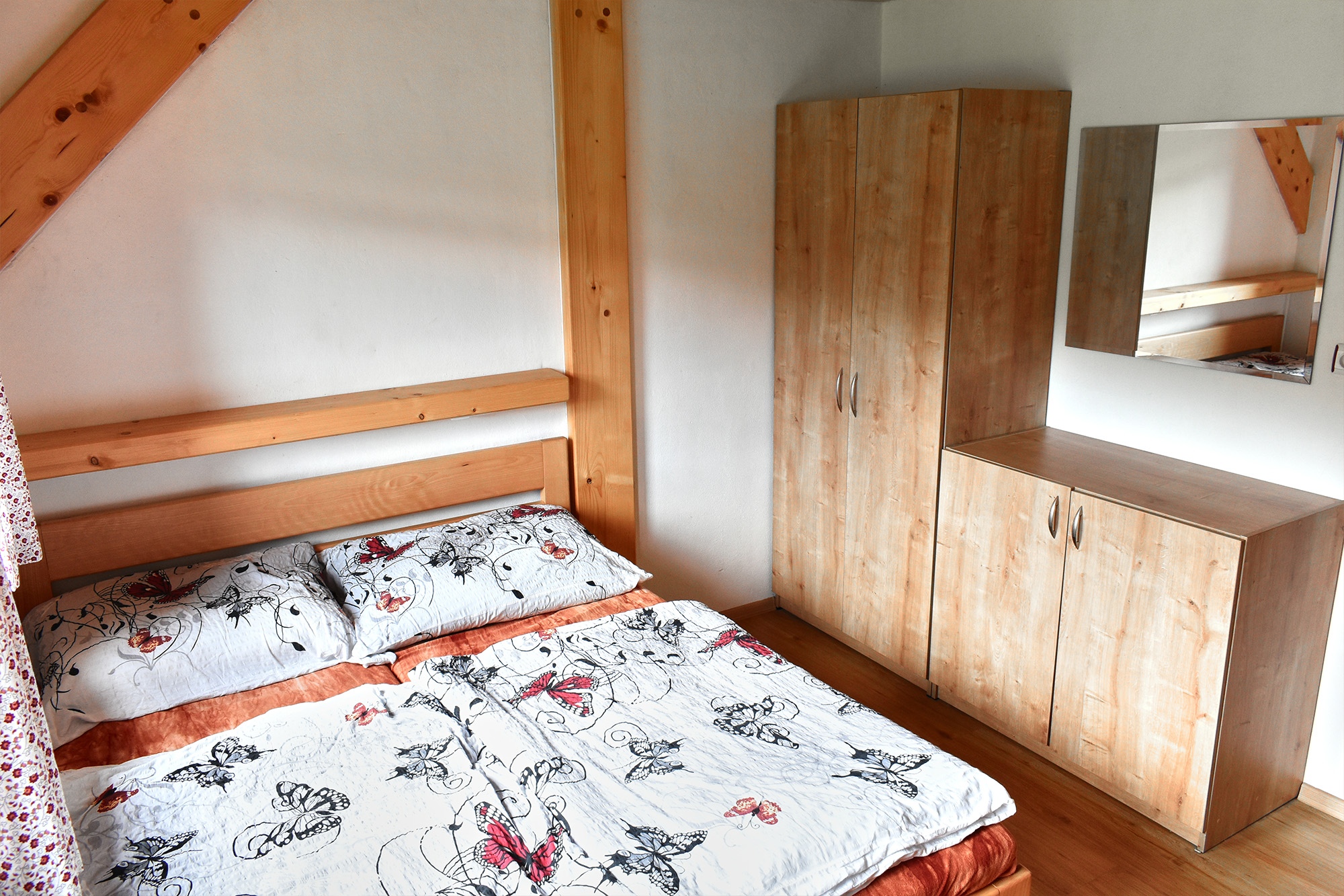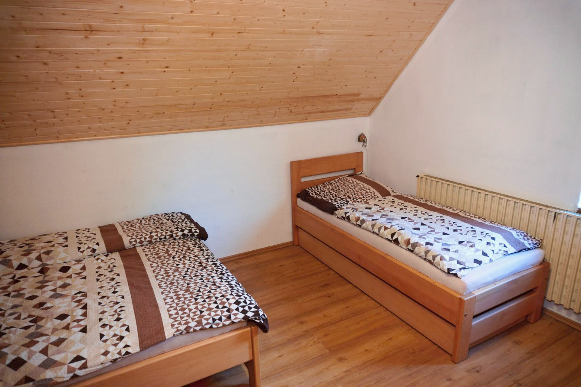 Chalupa Orlička se nachází v Orlických horách v malebném údolí Moravské Sázavy. Leží na velmi klidném místě na kraji obce Výprachtice obklopená lesy a svěží zelení blízko Horského resortu Buková hora. V obci je velmi dobře zásobený obchod otevřený 7 dnů v týdnu, restaurace se slušnou nabídkou jídel a velké dětské hřiště. Chalupa je naprosto optimální pro společnou zimní či letní rekreaci středně velké skupiny přátel či několika spřátelených rodin. Okolí nabízí možnost nerušené relaxace a je vhodné pro turistiku, cykloturistiku a sjezdové či běžecké lyžování. Objekt je bez stálého správce a je pronajímán celý. Chalupa Orlička prošla v roce 2021/2 rekonstrukcí a nabízí ubytování pro 18-24 hostů v sedmi dvou až čtyř lůžkových pokojích. V kompletně vybavené kuchyni jsou dvě velké lednice, dvě varné desky, trouba, myčka nádobí a automatický kávovar. Návštěvníkům je dále k dispozici velká terasa, venkovní gril, stolní tenis a Wi-Fi přístup k internetu. Kola nebo lyže je možno pohodlně uschovat ve velké stodole. U chalupy je dostatek parkovacího místa pro 10 aut. |