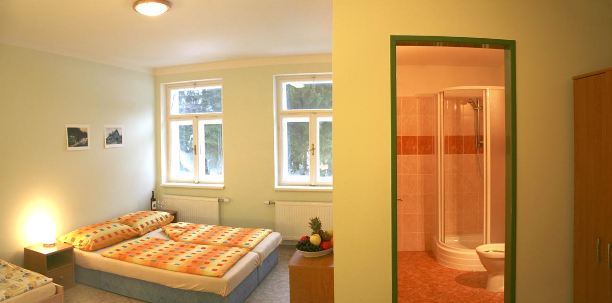 Nabízíme individuální ubytování, ubytování pro rodiny s dětmi i větší skupinám (školy v přírodě, zájmová sdružení, lyžařské kurzy, školení, semináře, porady, podniková setkání apod.). Kapacita zařízení je 43 lůžek. Budova leží samostatně na ostrově mezi potokem Bílá voda a řekou Mumlavou. Jedná se o atraktivní místo v Anenském údolí v centru Harrachova, avšak na klidném místě se zahradou a hřišti, která jsou ideální pro hry, relaxaci i zábavu.