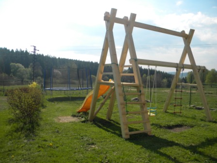 Aprtmány se nachází v areálu rodinné farmy, kde chováme kozy, hovězí dobytek, koně, prasata a drůbež. Je zde k dispozici dětský koutek se skluzavkou, trampolínou, pískovištěm atd. Dále pak rybník určený ke sportovnímu rybaření, velká oplocená zahrada, venkovní ohniště. Parkování je přímo u domu - zdarma. Ubytování je vhodné pro rodiny s dětmi. |