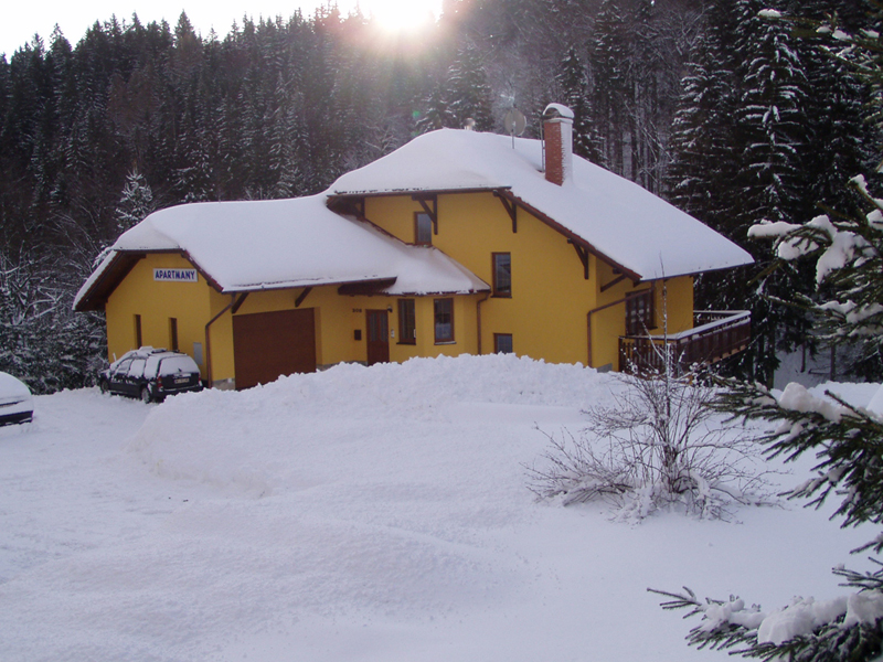 Ubytování v centru Janských Lázní v nadmořské výšce téměř 700 m, ve vzdálenosti pouhých 250 metrů od lanové dráhy na Černou horu a 300 metrů od lyžařského areálu SkiResort Janské Lázně