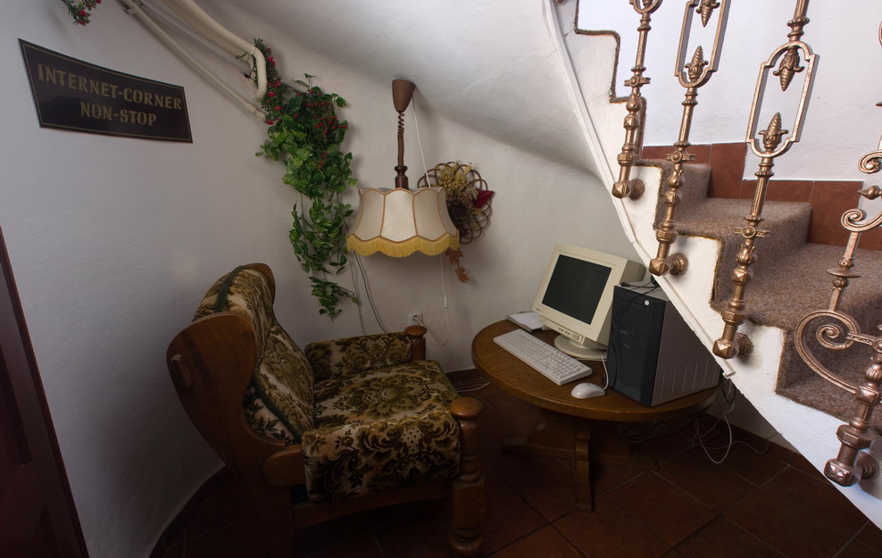 Hotelové taxi slouží k transferu nejen našich hostů (letiště, nádraží a jiné). Velké parkoviště pro vaše auto je přímo před penzionem (parkovací karta zdarma). Počítač se stálým připojením k Internetu je k dispozici zdarma a non-stop. Bezdrátové připojení je po celém penzionu - WiFi free spot 5 Mbit/s.