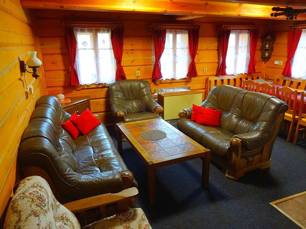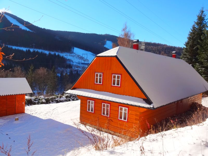 Roubená chalupa pro 2x11 osob (6x ložnice, dětský bazén průměr 160cm, herna a sauna) se nachází na jednom z nejpěknějších míst v malé horské obci, naproti sedačkové lanovce a v centru atraktivní části Jeseníků. Je umístěna v klidném prostředí pod lesem a bokem hlavní komunikace. Kousek od chalupy se nachází rovněž známý horský areál Červenohorské Sedlo (1.030 m.n.m.) se sedačkovými lanovkami, kde je hlavní východisko do všech stran Jeseníků. Krytý bazén s Whirpool v Koutech 2km, termální aquapark 8km, restaurace 250m.
