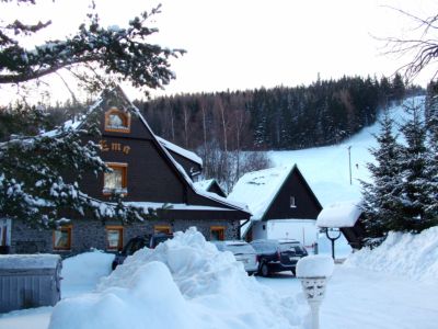 Stylový rodinný penzion v nejvýznamnějším lyžařském středisku dané lokality v Malé Morávce - Karlov pod Pradědem v Jeseníkách, bezprostředně u lyžařských sjezdovek přilehlými s pozemky a vlastním parkovištěm s kapacitou 15 vozidel. Zděné vytápěné bungalovy s vlastním příslušenstvím vhodné pro spřátel. rodiny. Pro náročné jsou připraveny luxusní apartmány na hlavní budově s parním boxem s chromoterapií, masážním WC a masážním křeslem. Stylová restaurace s krbem s výtečnou domácí kuchyní. Velký výběr domácího menu po celý den. V dosahu 12 sjezdovek. Kapacita 50 lůžek. Vzdálenost od vrcholu Pradědu 10 km. Svatební hostiny, gastronomické akce, firemní akce apod. Informace - GSM: 603 575 109 |