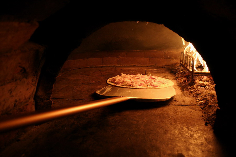 Možnost celodenního stravování ve vlastní restauraci – výběr z jídelního lístku, pečení pizzy