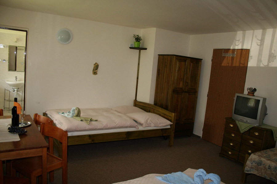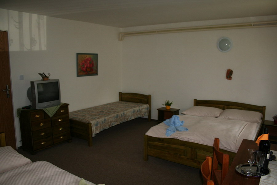2-5 lůžkové pokoje, všechny pokoje s vlastním soc. zařízením (sprchový kout, WC) TV