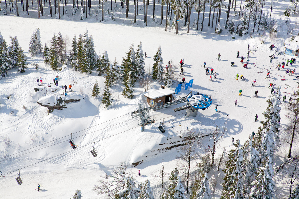 V zimním období nabízí Železná Ruda vynikající lyžování - 25 km sjezdových tratí různých stupňů obtížnosti, 29 vleků, snowparky. Sjezdovky jsou uměle zasněžovány, pravidelně strojově udržované, takže si na své přijdou jak začátečníci tak i nároční lyžaři. Největší sjezdařský areál na Šumavě – Špičák nabízí 8,4 km sjezdovek a čtyřsedačkovou lanovku s nástupním kobercem. Od hotelu je vzdálen pouze 1,5 km. Pro rodiny s dětmi jsou vhodné sjezdovky vzdálené cca 200 m od hotelu. Lyžovat nemusíte jenom v Čechách! Na 9 km vzdáleném Velkém Javoru v Německu je rozsáhlý lyžařský areál s kabinkovou i sedačkovou lanovkou, večerním lyžováním a bobovou dráhou.